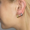 Du åpner og lukker smykkene ved å åpne den lille segmentet på midtringen. Den har et hengsel på den ene siden, så du mister ikke låsedelen når du må sette inn smykkene. Når smykket er på rett plass, klikker du den igjen. De første gangene kan det være litt vanskelig å gjøre det, spesielt hvis det er inne i øret og du ikke får en hjelpende hånd.