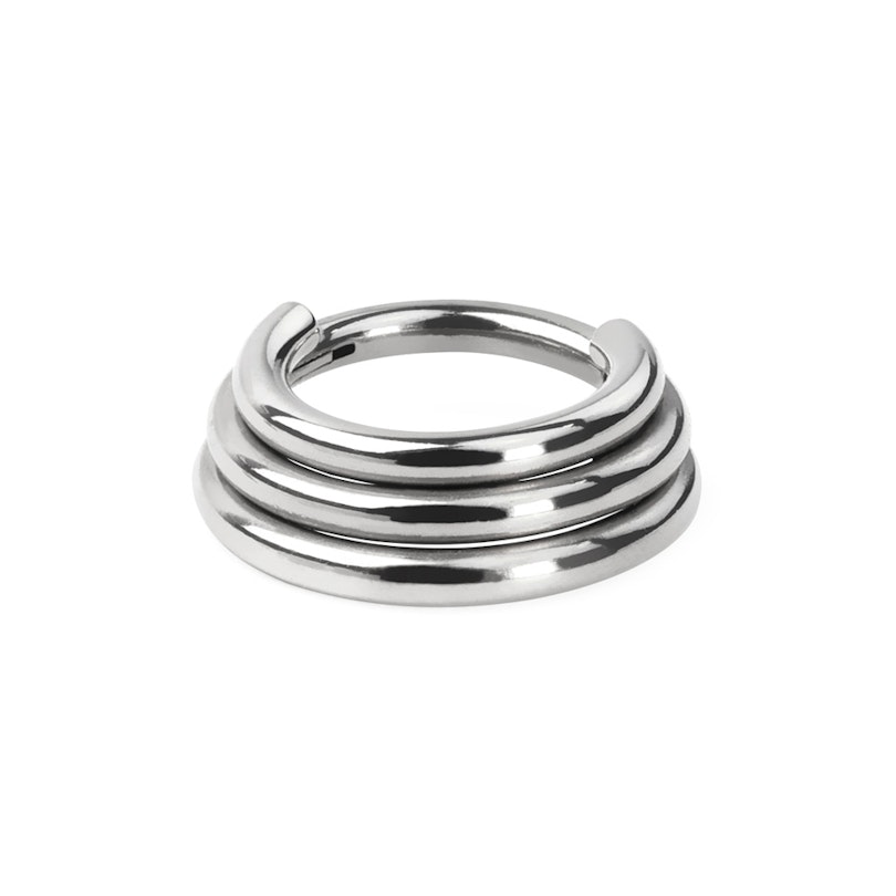 Selv om smykkene kalles en 3-lags ring, er det faktisk 3 individuelle ringer som er sveiset sammen. Bare den midterste ringen er en vanlig ring. De to andre har fått fjernet en del slik at bare en ring trenger å gå gjennom piercingen din.