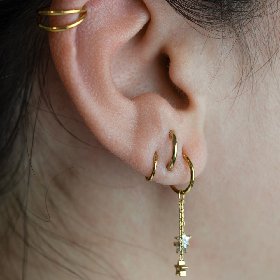 Laget i titan: allergivennlig, vanntett, slitesterk og perfekt for hverdag. Du kan tre hoopen over favorittringen din, så lenge den ikke er tykkere enn 3 mm.
