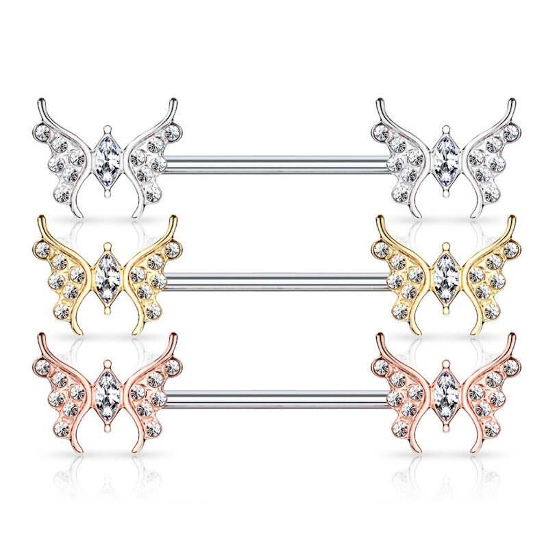 Navn: Barbel nippelsmykker med sommerfugler og edelstener