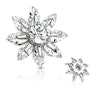 Smykket du ser her tar form ved hjelp av de mange stenene som sitter på det. Rundt smykket sitter det en masse ovale stener som ligner bladene på en blomst. Derutover sitter det også en stor og flott fasettskåret sten i midten av smykket. Stenene sitter fast ved hjelp av den sol-lignende messing delen som sitter på fronten av dem, samt bakplaten som også er laget av messing. Disse platene sitter og holder godt fast i stenene og forsikrer at de ikke faller ut. Messingdelene er belagt for å gi dem andre farger. Derfor kan du velge mellom flere farger på smykket - stenene forblir klare uansett hvilken farge du velger.