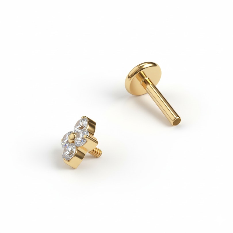 Labreten er laget av titan, som gjør den allergivennlig, vanntett og slitesterk nok til daglig bruk. Den innvendige gjengen gjør innsettingen enkel og sikrer at smykket sitter trygt på plass, mens flatbacken bidrar til komfort hele dagen.