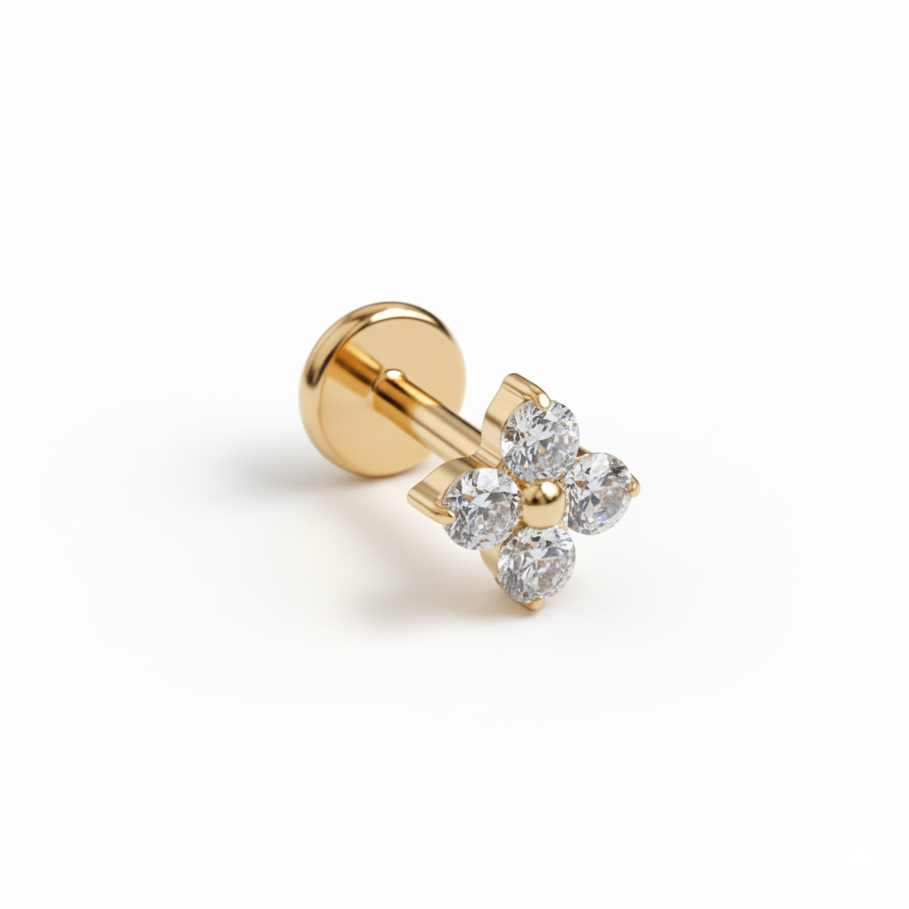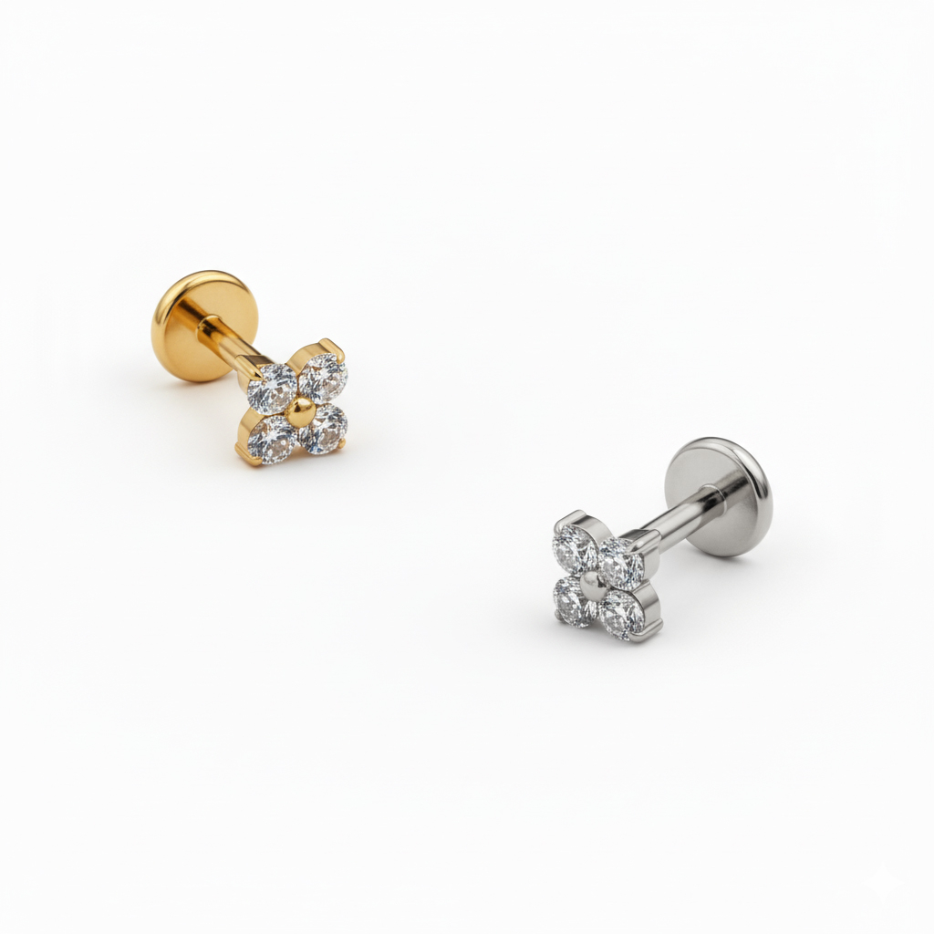 Labreten er laget av titan, som gjør den allergivennlig, vanntett og slitesterk nok til daglig bruk. Den innvendige gjengen gjør innsettingen enkel og sikrer at smykket sitter trygt på plass, mens flatbacken bidrar til komfort hele dagen.