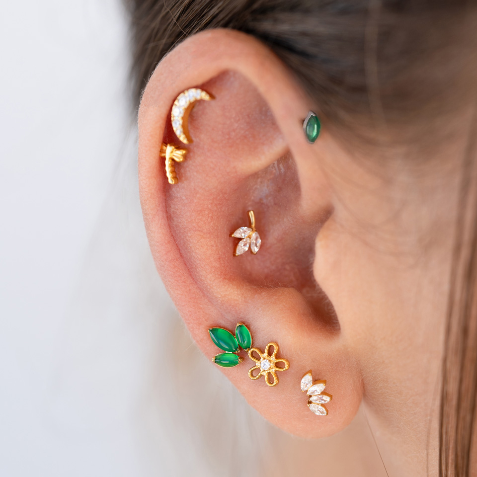 Plassering: Tragus, Spiderbite, Snakebite, Medusa, Madonna, Lower labret, Øreflipp, Helix, Conch, Forward helix, Angelbite