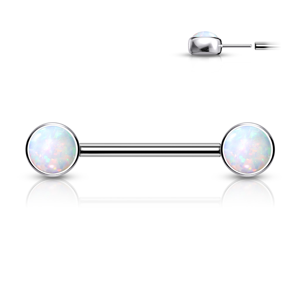 Navn: Trådløs push-in brystvortebarbell av titan med opaler i endene