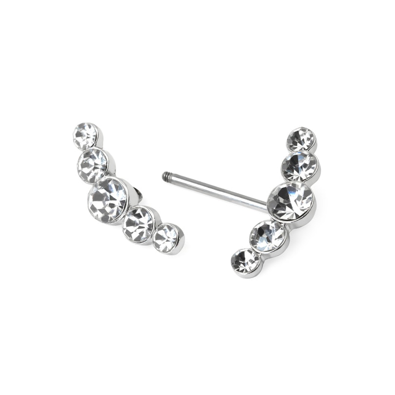 Stenene er limt fast på rhodiumsbelagt messing, som har en liten tråd, hvor staven sitter. Stenene kan du selv velge fargen på. Velg mellom fem forskjellige stenfarger, alt etter hva du synes vil være penest til din kropp og resten av outfittet ditt.