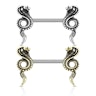 Merk at den ene slangen er limt fast til staven, så det er ikke mulig å skifte ut staven på smykket. Grunnen til detter er at det ikke finnes noen garanti for at slangene vender mot hverandre om den ene ikke sitter fast.