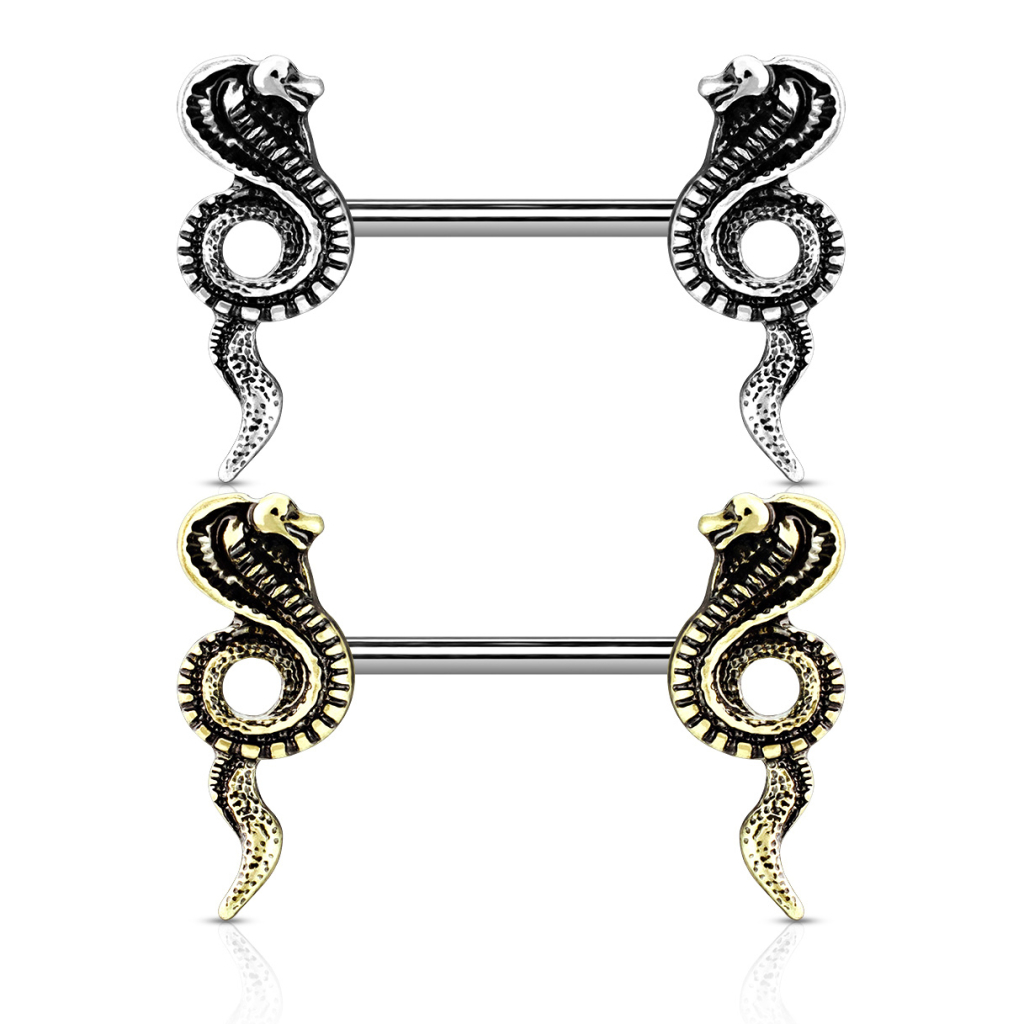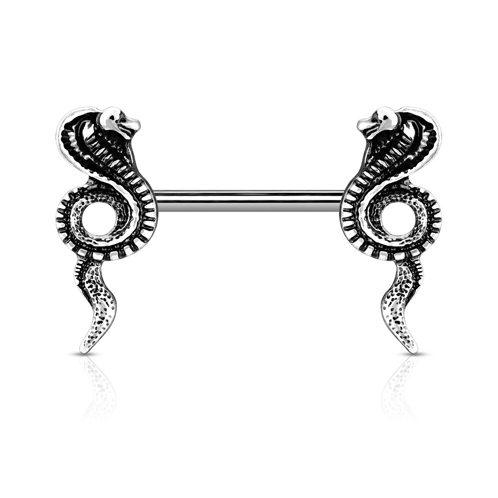 Smykket her består va en stav på 14 mm. og 1,6 mm i trådtykkelsen. I hver ende sitter det en vridd kobraslange. Slangene er symmetriske så de har fronten mot hverandre og det samme gjelder krøllen på kroppen. Slangene måler ca 20 mm i høyden.
