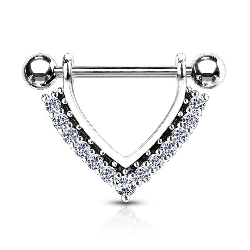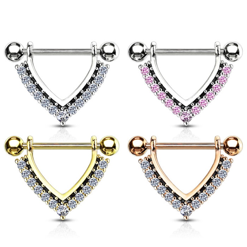Dette smykket er beregnet til å brykes på brystet. Så har du en brystpiercing så har du havnet på den rette plassen. Smykket henvender seg mer til det kvinnelige klientellet med sine mange stener og henholdsvise feminine farger. Staven er 18mm lanfg, og det er ikke ett mål du kan bruke til noe, da vedhenget henger fast i staven og dermed gkjør staven en smule mindre. Så mellim de to hengslene er det ca 14mm som passer til de fleste.