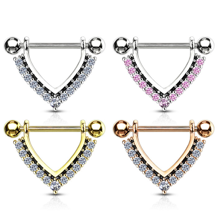 Brystpiercing med stenbesatt v-form