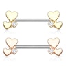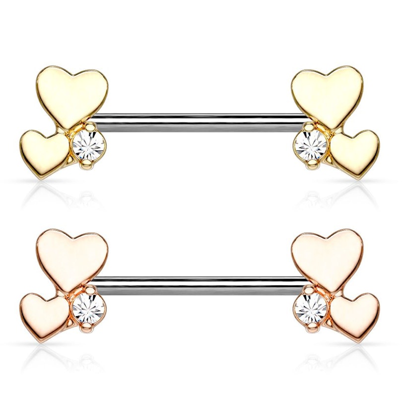 Navn: Brystpiercing med to hjerter og en sten i hver ende