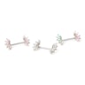 Staven er laget av kirurgisk stål og metallet som stenene sitter i, er laget av messing. Messingen har deretter et lag med rhodium som gjør at den oppnår en flott hvit glans. Smykket finnes, som du kan se på bildene, i tre forskjellige stenfarger. Du velger naturligvis selv hvilken av fargene du ønsker.