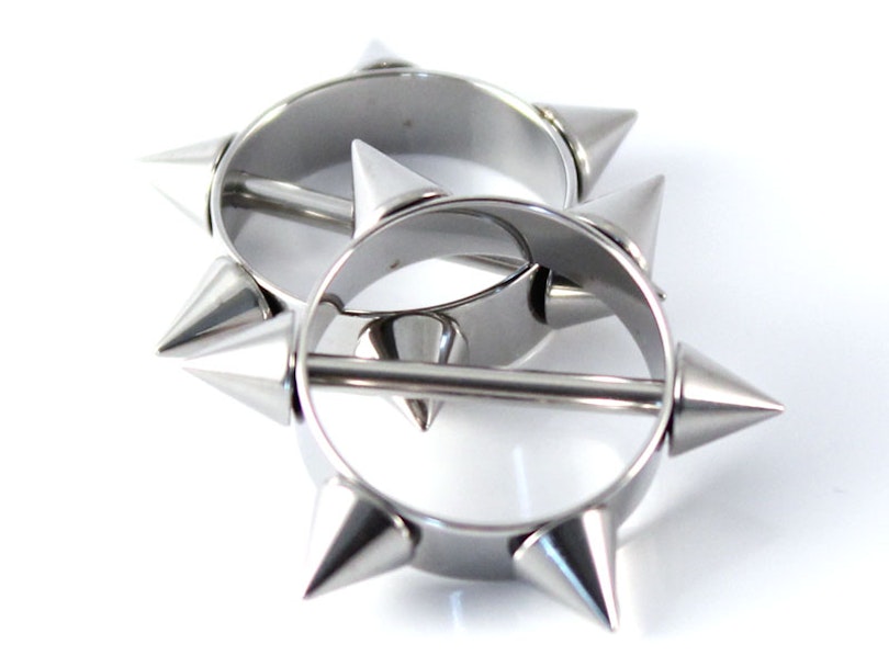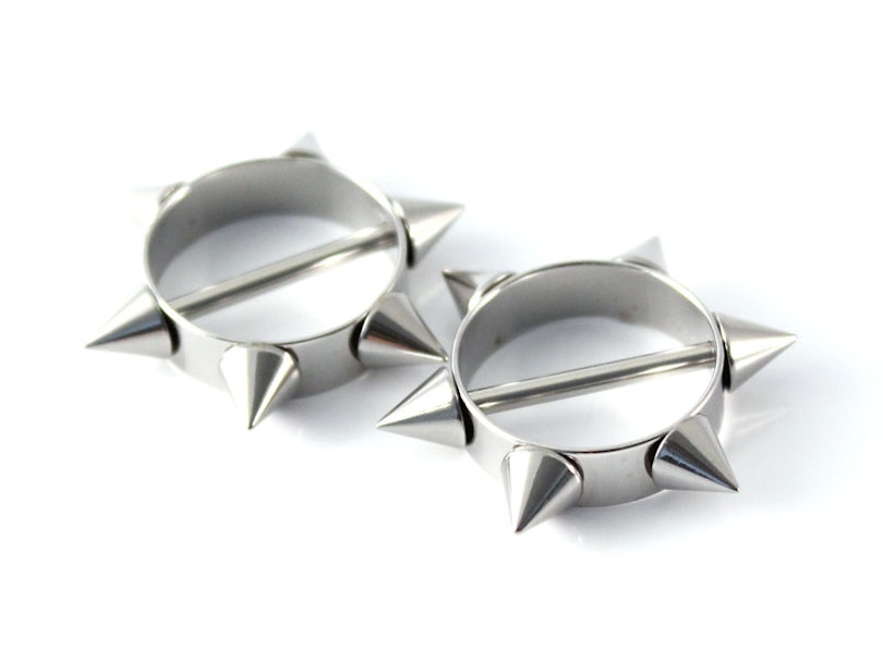Et brystskjold med pigger er et stilig og dristig smykke for din brystpiercing, og det er ikke akkurat denne type smykker alle andre har. Så hvis du vil skille deg ut på en litt frekk og ekstra dristig måte, så vil nok dette brystskjoldet med pigger, som det også kalles være noe for deg.
