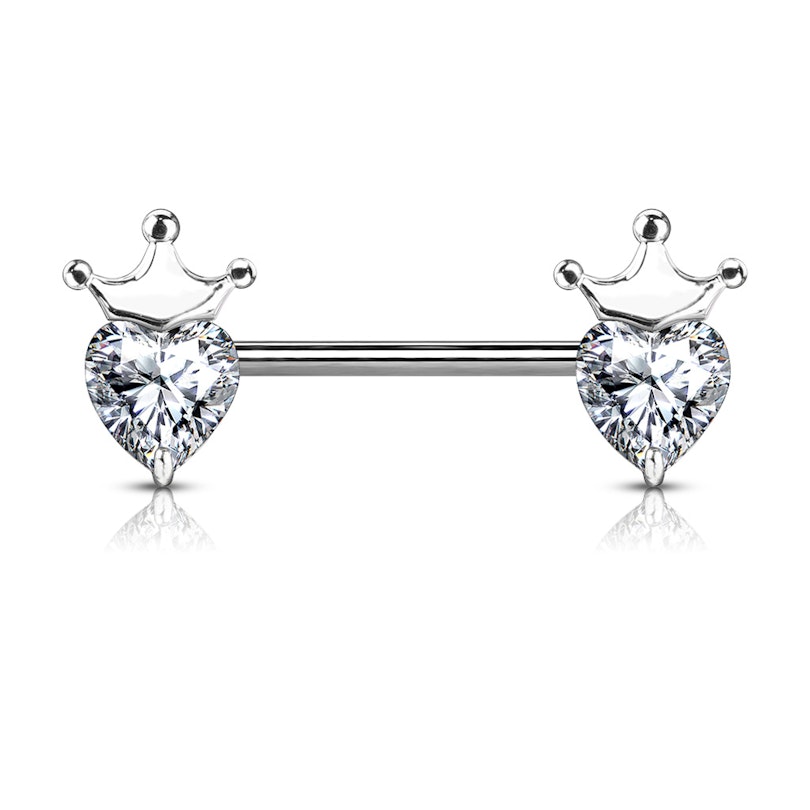 Navn: Brystvortepiercing med krone og hjerteformet sten