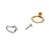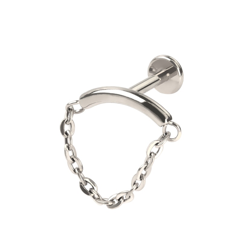 Denne labreten har en buet bar som passer fint å bruke til en helixpiercingen, og vil også ta seg ut i øreflippen. Den har et delikat kjede med et feste på hver sin side der selve kjedet dingler fra.