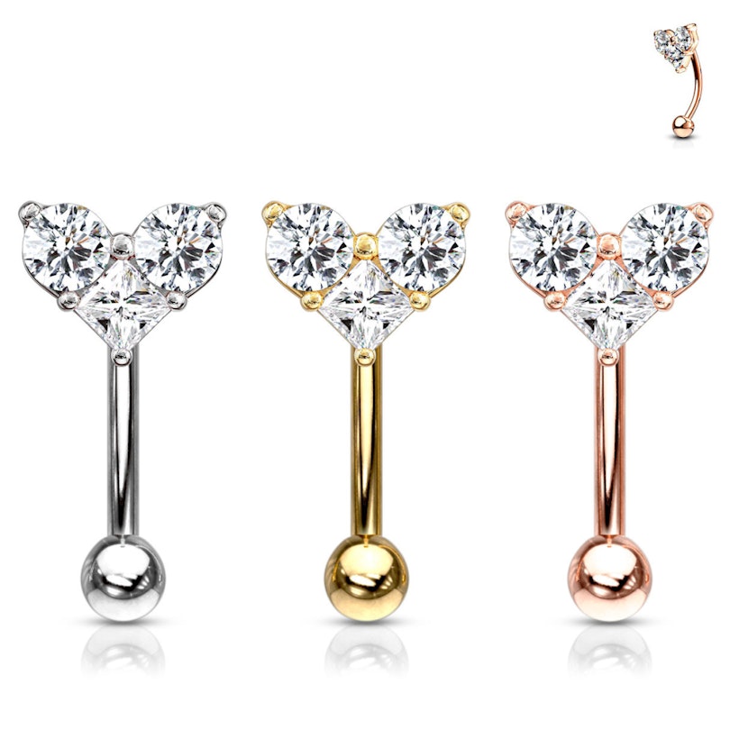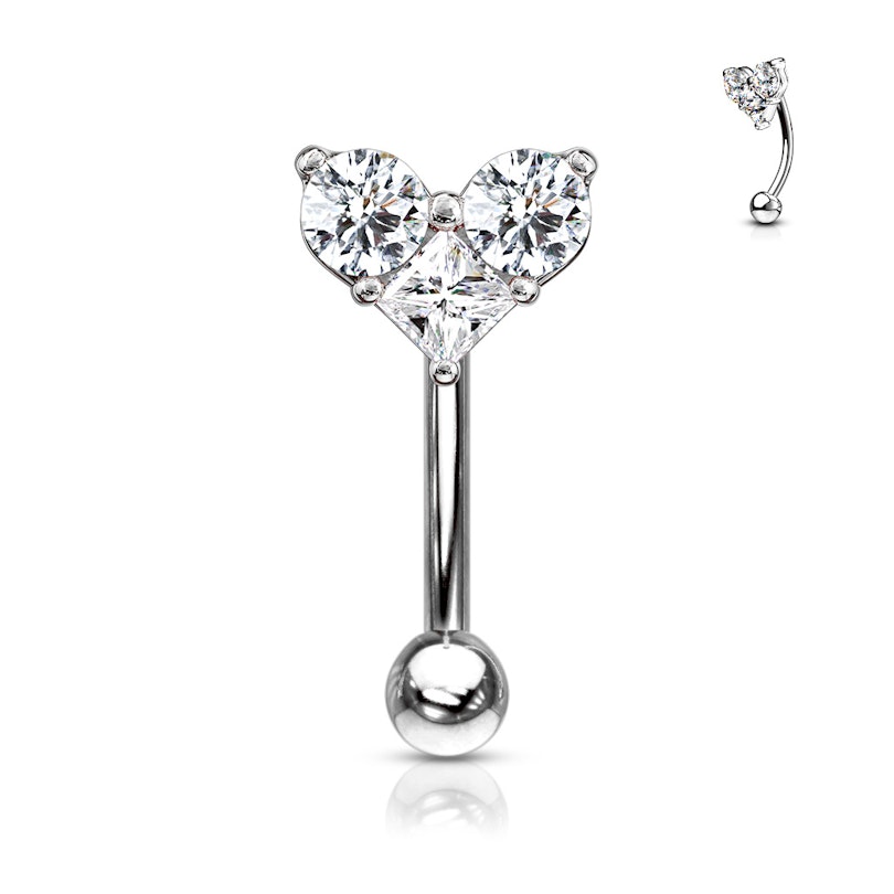 Smykket her er en buet stav, som kan brukes i f.eks øyebrynet. Passer dine mål med smykkets mål, kan den også brukes til en kvinnelig intimpiercing som f.esk. Christina.