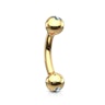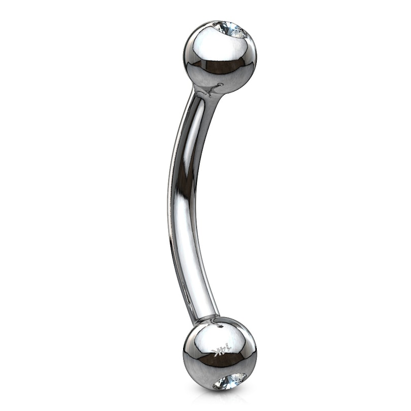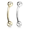 Flott og feminin buet stav av 14 karat gull med en skinnede klar sten i begge kulene, som er montert i endene. Denne staven er perfekt til deg som går etter den tidløse klassiske looken med en diskre streif av yndefull eleganse. Staven her er som en jomfruelig ung jente som viser sin skjønnhet til verden med nedslåtte øyne - frem for å føre seg frem som en prinsesse. Den er diskre, tidløs og feminin på en ytterst raffinert måte. Staven fås i to forskjellige lengder som velges før du legger varen i kurven.