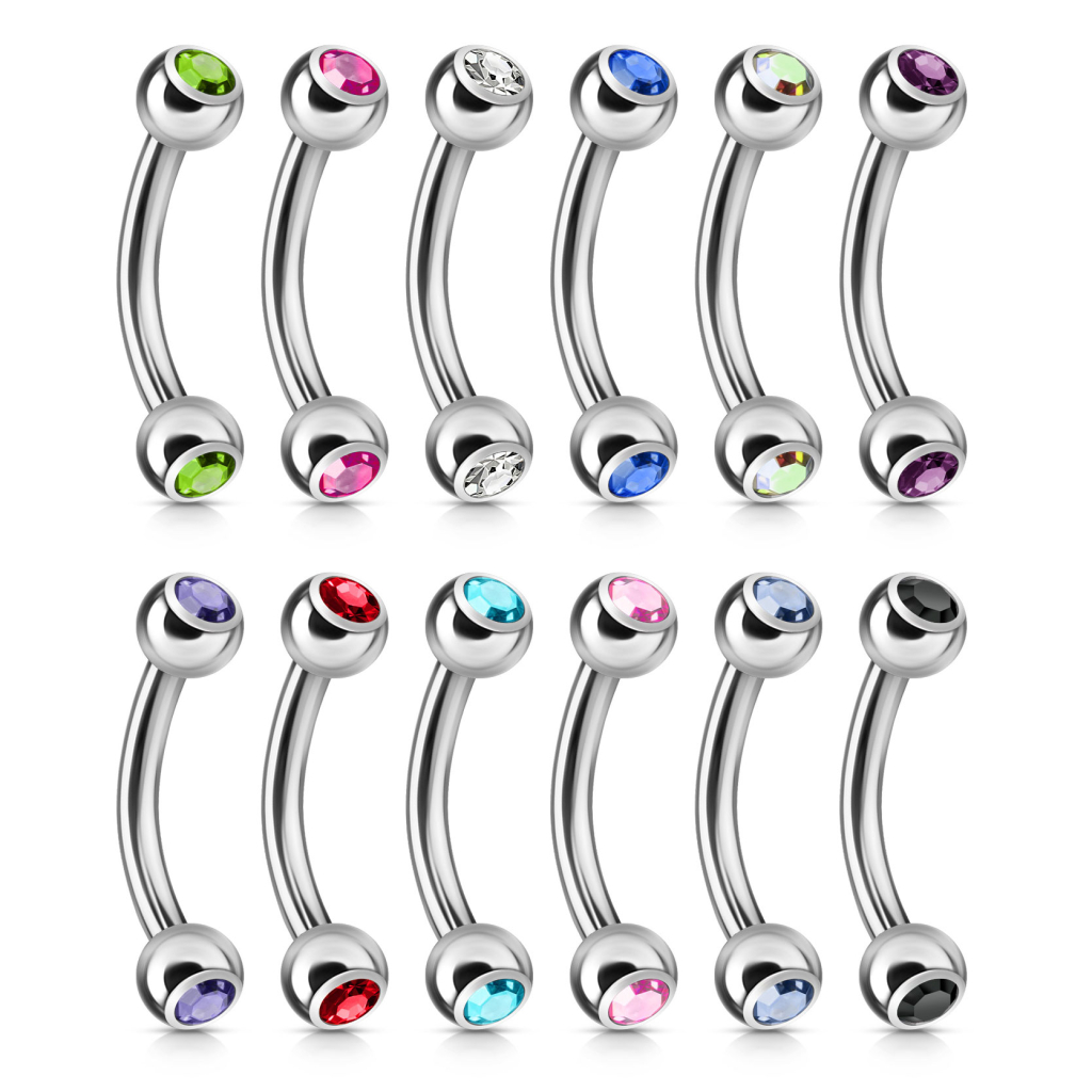 Trenger du et nytt og lekkert piercingsmykke med litt liv og sprell i? Da kan denne skjønne buede staven med en vakker sten i begge endene, kanksje være akkurat det du går og søker. Den buede staven egner seg perfekt til øyenbrynspiercinger, brystpiercinger samt visse former for intimpiercinger. Smykket er laget av kirurgisk stål og fremstår riktig flott med sitt skinnende blanke look. Stilen er enkel og tidløs og dette smykket kan selvføleglig brukes igjen og igjen samt til stort sett enhver tenkelig anledning.