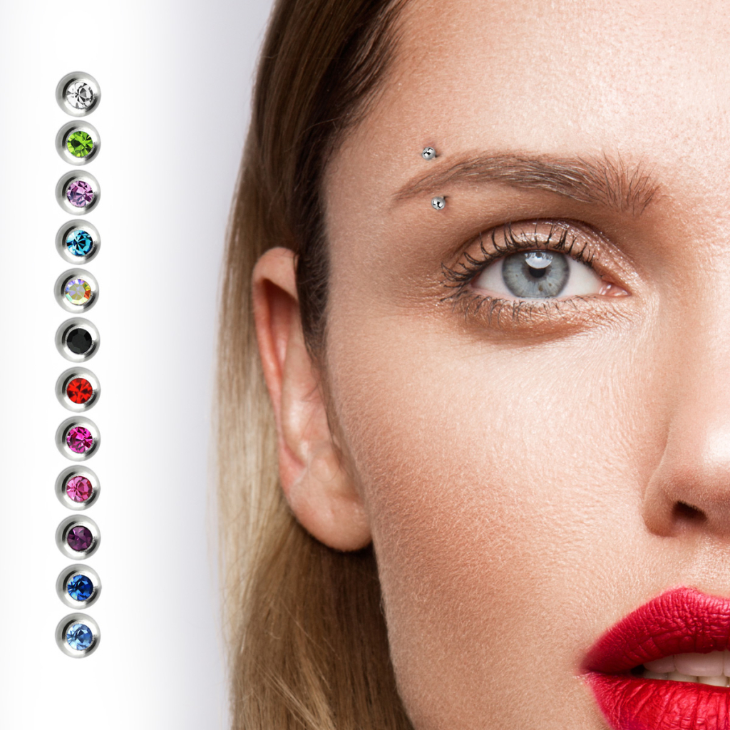 Plassering: Vertical labret, Snug, Rook, Øyenbryn, Daith, Anti-tragus
