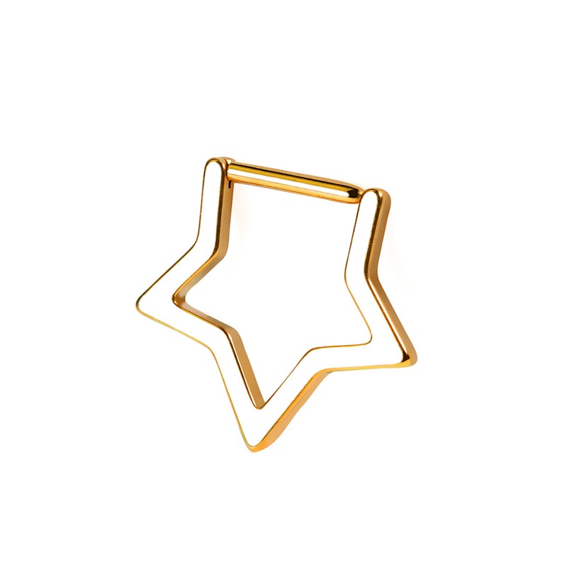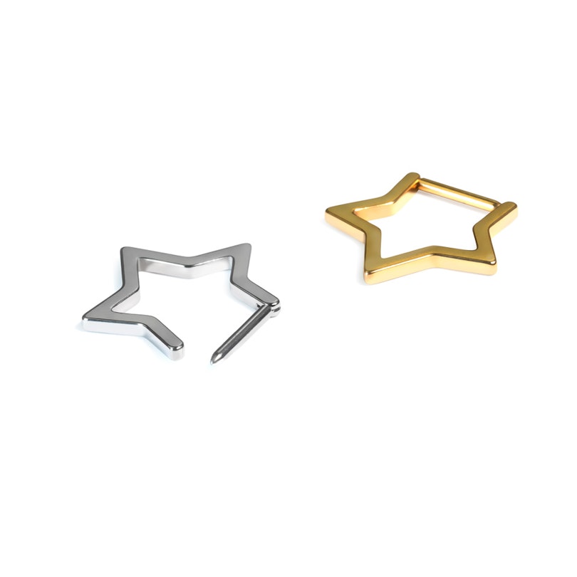 Denne stjerneformede clickerringen i titan passer perfekt for flere typer piercinger. For eksempel vil den se flott ut som septum-, helix-, øreflipp- eller rookpiercinger. Den er laget av titan som er et slitesterkt og vanntett materiale, og ikke minst er smykket hudvennlig og laget for å vare. Hengselet som åpner det gjør prosessen med å sette ringen i piercingen enkel. Smykket er faktisk hult, noe som gir den et solid utseende samtidig som den er superlett og behagelig å ha på seg.