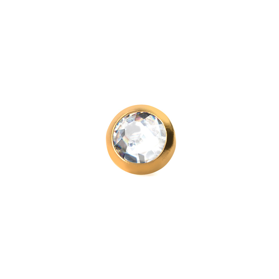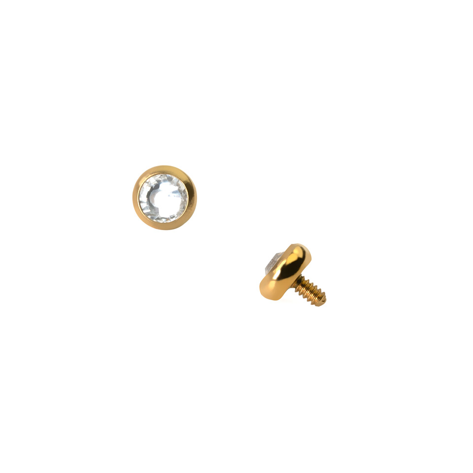 Dette smykke til en dermal anchor piercing består av en liten rund plate hvor det sitter en flott klar sten.