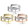 På smykket sitter det to kors, et kors med små klare stener og et kors uten stener - de to korsene sitter skrått over hverandre på den siden av smykket som kommer til å sitte fremst på ditt øre. Stenene på det ene korser tilfører også smykket en del eleganse, hvilket er tydeligt når lyset treffer dem og de begynner å skinne.