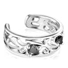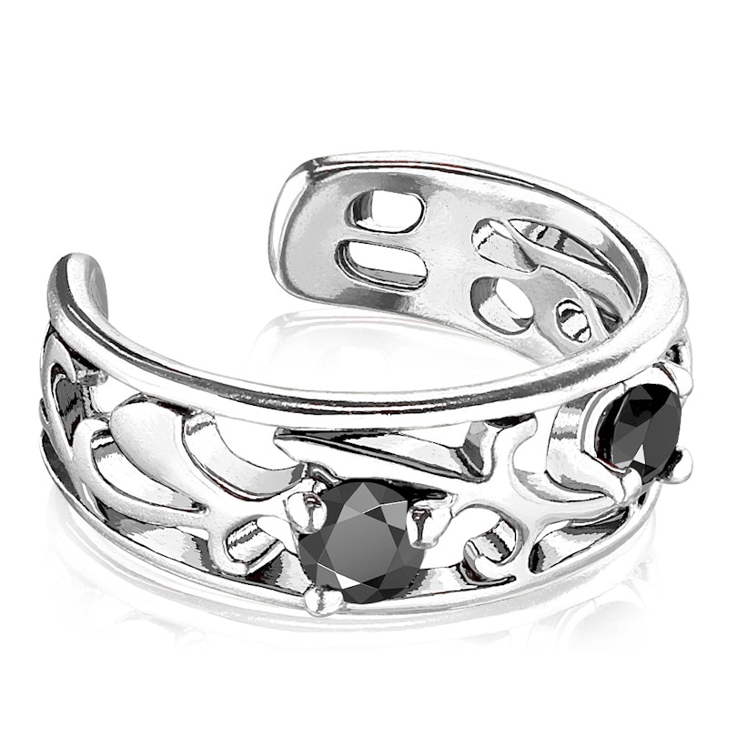 Denne earcuffen har et vakkert filigrandesign inspirert av naturen, med linjer inspirert av grener. Dessuten har den to små svarte steiner, plassert separat på utsiden som skaper en interessant asymmetrisk komposisjon. Det er denne siden som vil være synlig når du bærer den i øreflippen eller brusken.