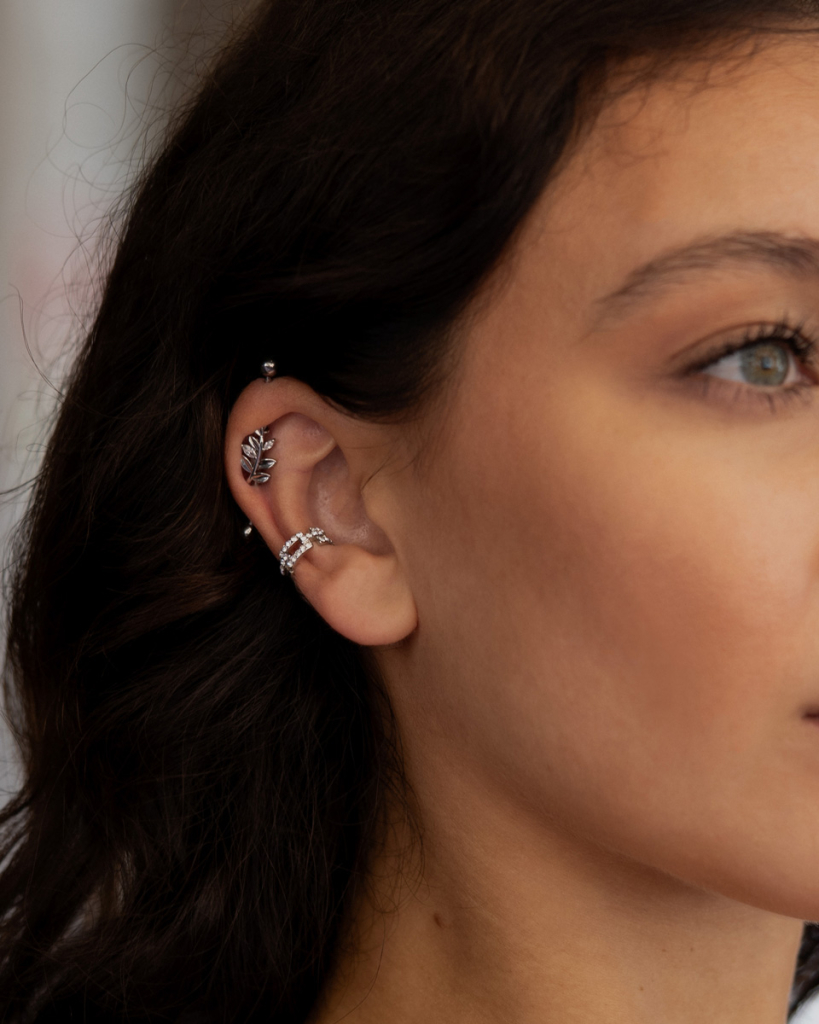 Earcuff til deg som gjerne vil se hvordan en potensiell ørepiercing kommer til å se ut. Med dette smykket skal du nemlig ikke "under nålen" før du kan bruke det. Det sitter fast i ditt øre ved hjelp av de to innoverpekende endene som klemmer rundt øret ditt. Smykket er laget av messing og belagt med forskjellige belegg, alt etter hvilken farge du velger til din fremtidige earcuff - du kan blant annet velge mellom sølv, gull og rosegull.