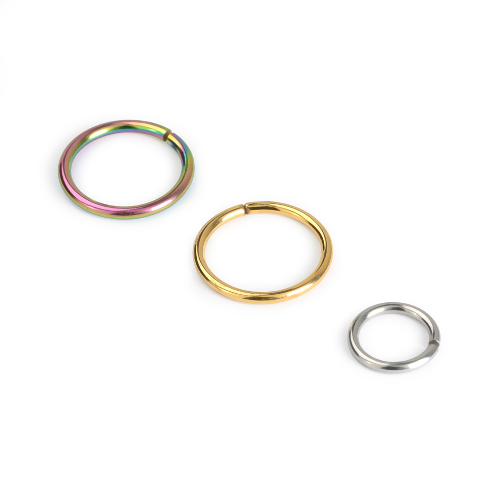 Med denne endeløse ringen er det lettere å sette ringen inn i piercingen din. Sirkelen består av et helstøpt metall med en liten åpning. For å åpne ringen trenger du bare å vri endene i motsatte retninger som en spiral - ikke trekk dem fra hverandre sidelengs. Sett den inn i piercingen din, og ringen lukkes når du slipper den. Merk at endene på de mindre modellene kan være skarpe når de er åpne.