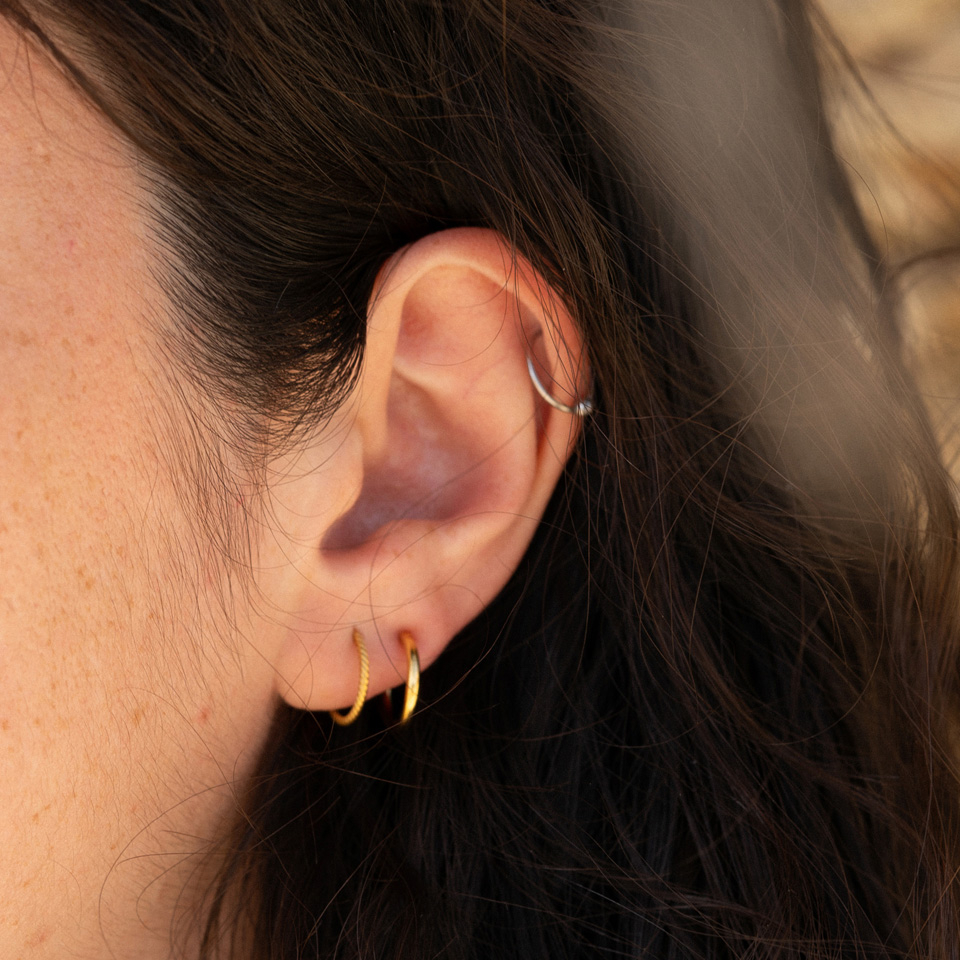 Hvordan skal man så åpne ringen, vil mange spørre? Det er lett. Ringen åpnes ved å vri den lett slik at den minner om en twisterring. Deretter settes smykket på plass i piercingen og ringen vris tilbake slik at enden på ringen kommer inn i den lille fordypningen i kulen - Lett og enkelt.