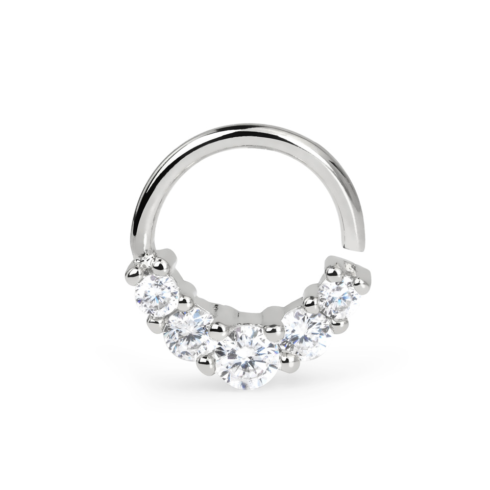 Ringen kan brukes i flere forskjellige piercinger. Det er faktisk bare fantasien din og selvfølgelig formen og dimensjonene til smykket som setter grensene. Bruk den for eksempel. i septum, daith eller i andre piercinger der målene tillater det. Ringen har en innvendig diameter på 8 mm. og en trådtykkelse på 1,2 mm.