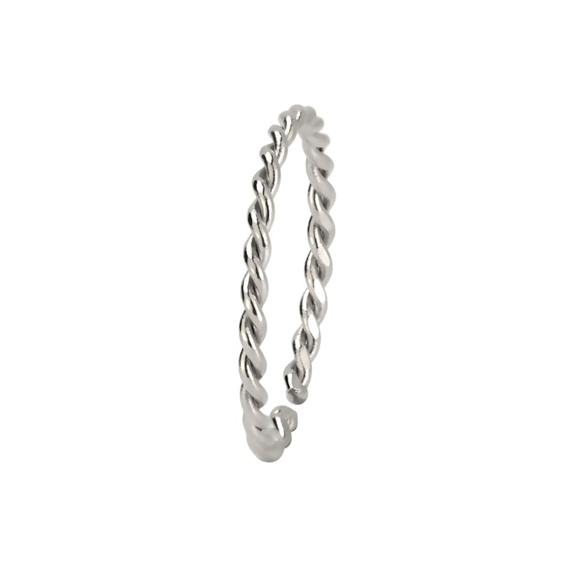 Med denne endeløse ringen, er det blitt brukt to stykker metall som først er blitt vridd om hverandre og formet til en ring, så det nærmest gir en flettet look. Endene på ringen har fått en liten sveising, som etterpå er blitt slepet slik at det ikker er noen skarpe kanter , både for at skåne ens piercing når man tar ringen i, men også for at holde de to metalldelene sammen.