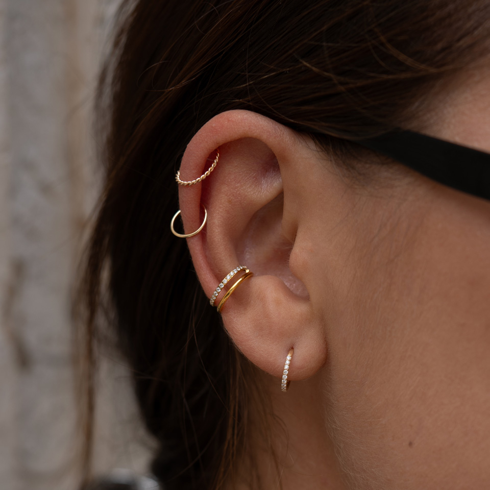 Smykket har avrundede kanter, en flott og tydelig vridning og frem for alt, et kjempeflott skinn fra gullet. Du velger selv hvilken av våre gullvarianter du ønsker og din størrelse, slik at du får noe som passer perfekt til din piercing.