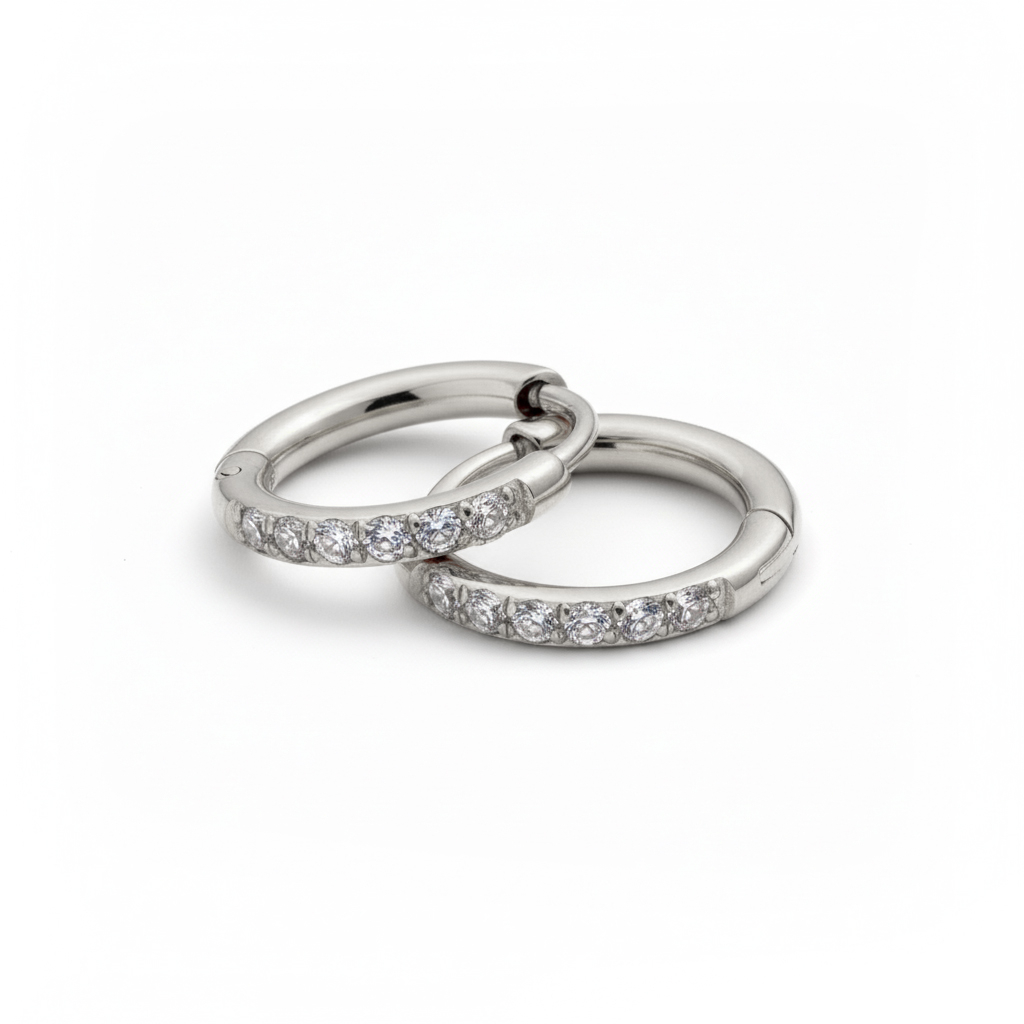 Et par huggiehoops i kirurgisk stål med edelstener
