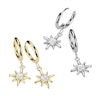 Dette paret med huggies med solstråleanheng blir til en gledespreder når du bruker dem. Hver ring har et detaljert solstråleanheng med en sten i midten, og gir ørekombinasjonen personlighet uten å virke påtatt.