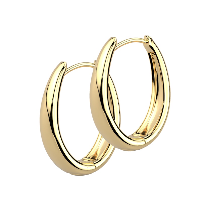 På jakt etter hoops med det lille ekstra? Da bør du ta en nærmere på disse hoopøreringene. De er laget av robust kirurgisk stål og tilgjengelige med klassisk sølv- eller sølvfinish. Den unike ovale formen er litt bredere nederst, noe som som gjør dette smykket unikt. Med praktisk hengslet lukkemekanisme er den enkel å ta av og på. Selges som par - og er klare for å løfte ørelooken din på et blunk.