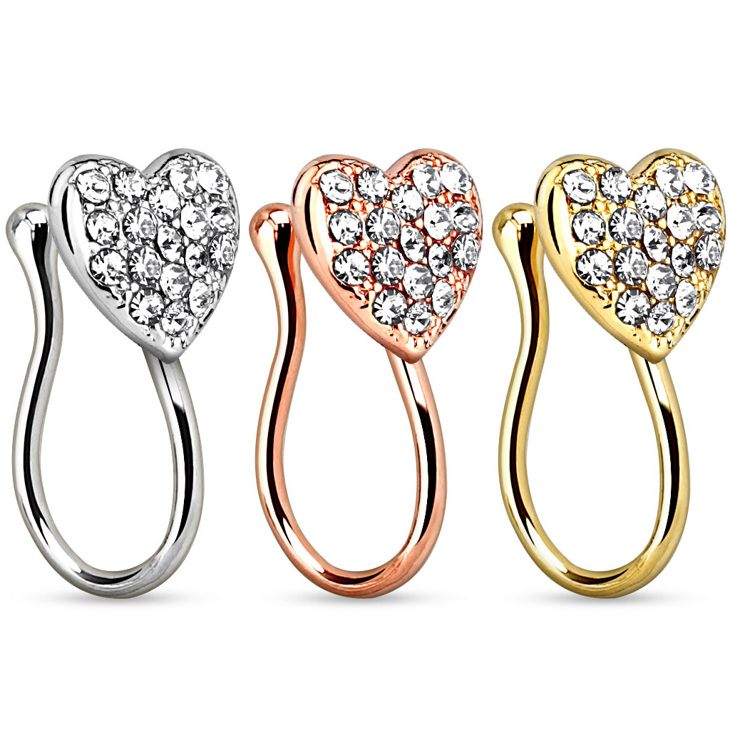 Smykket er et såkalt fake smykke og krever derfor ingen piercinger. Det fungerer ganske enkelt som en liten klemme, som settes opp rundt det ene neseboret. På avstand vil det da se ut som om du har en ring i nesen, med et funklende flott hjerte på.