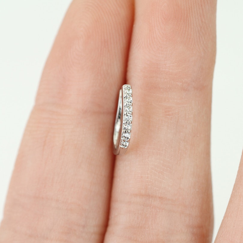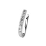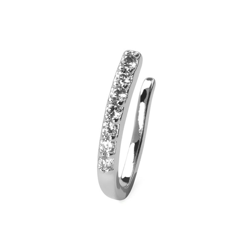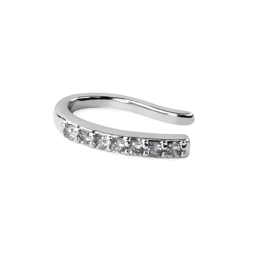 Tykkelsen på smykket er ca. 1 mm. og har, som du kan se på bildet, en rekke av syv klare stener påsatt. Siden det er snakk om et falsk piercingsmykke som ikke går gjennom huden, er hele smykket laget av messing, som gir det sin flotte blanke overflate.