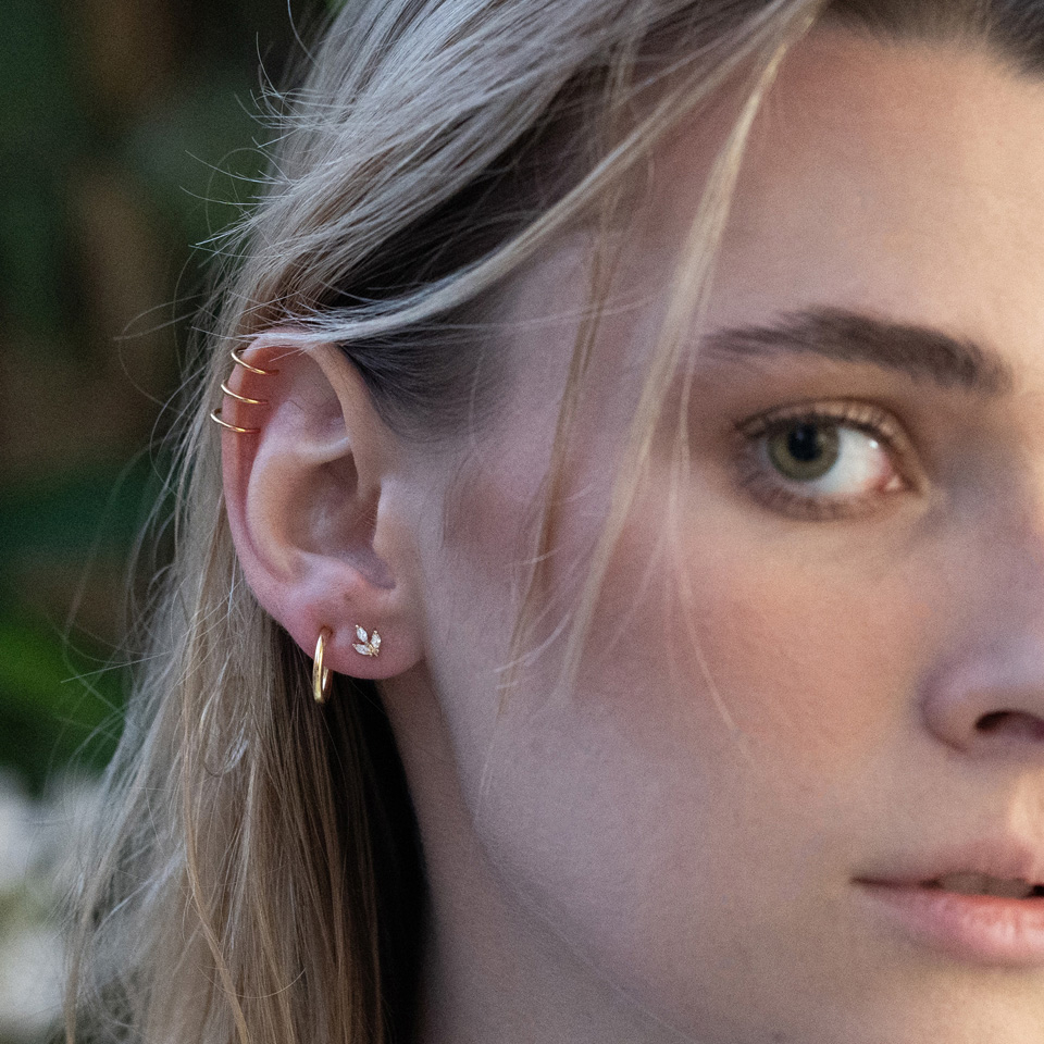 Dette smykke består av to eller tre sammensatte ringer som er åpen under så det ikke må lages hull i huden. Den settes bare rundt brusken øverst i øret og så ser det ut som om du har to eller tre piercinger i øret.