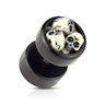 Denne fake pluggen er noe ut over det vanlige. Tre fete 3D skulls stikker ut fra dette piercingsmykke og får den til å se ekstra ond ut.