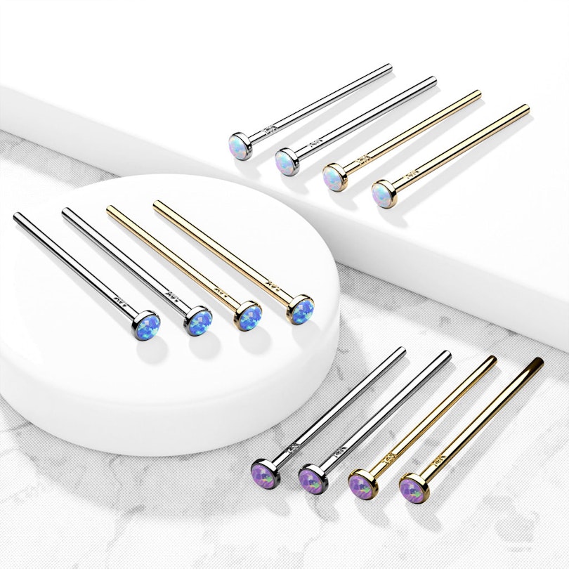 Staven er 19 mm lang og kommer i to tykkelser. Samtidig kan du også velge fargen på opalstenen som sitter i enden av staven. Opalen er ikke ekte opal, ettersom de ofte er uegnet til piercingbruk. Denne opalen er syntetisk og egner seg derfor til bruk i piercinger.