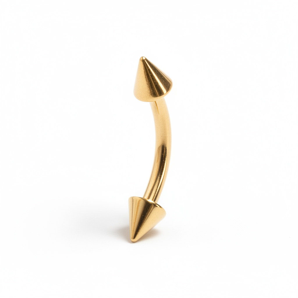 Skal du ha en ny look til ditt bryst eller øyebrynspiercing? Sjekk da ut denne lekre buede staven med et flott gullbelegg samt frekke pigger i endene. Den fås i to forskjellige trådtykkelser samt to forskjellige lengder i hver av trådtykkelsene, alt avhengig av hvor du skal bruke den. Den buede staven er også velegnet som intimpiercing til kvinner, så selv her har du muligheten til å friske litt opp med en ny frekk look.