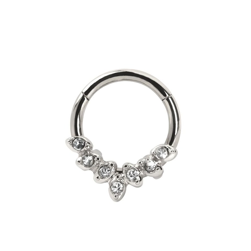 Hengslet ring i kirurgisk stål med 7 CZ-blader