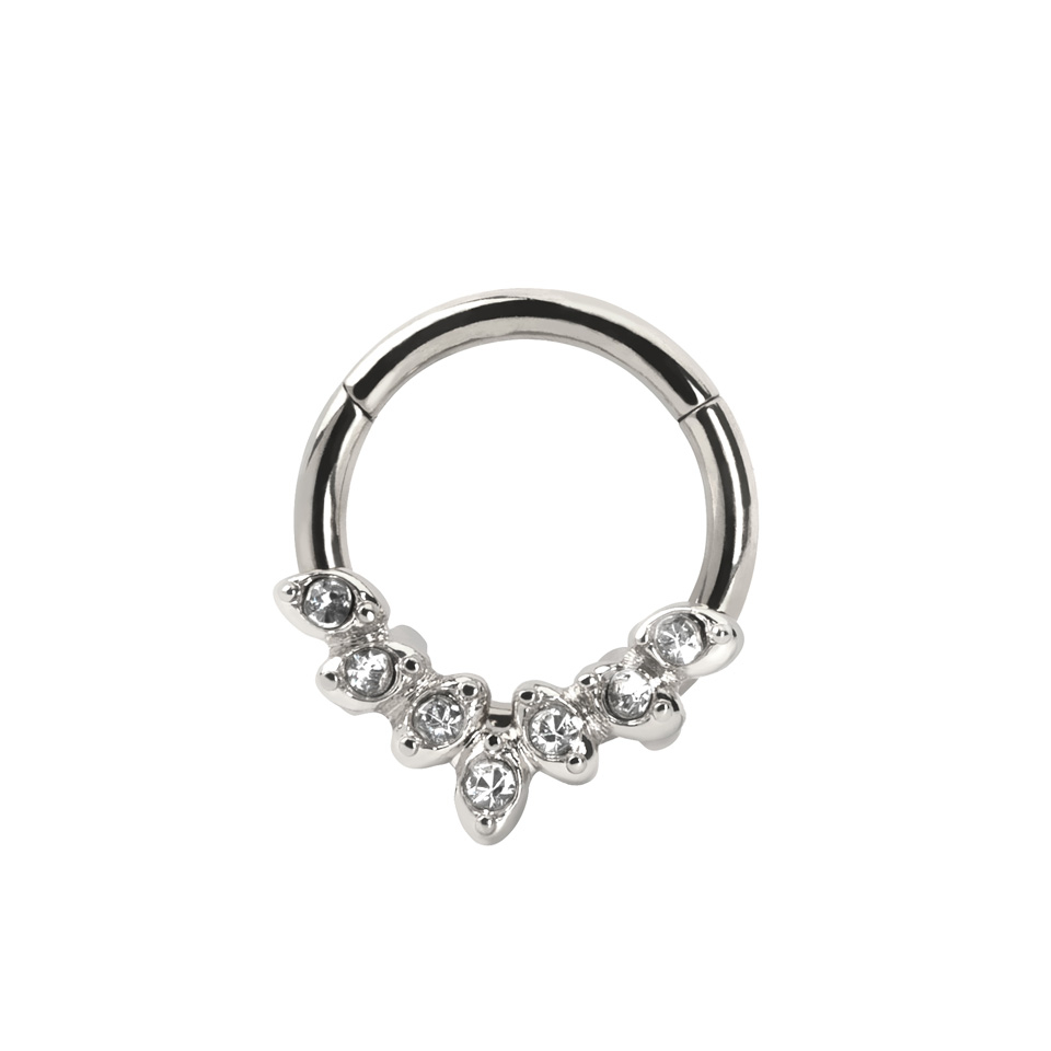 Hengslet ring i kirurgisk stål med 7 CZ-blader