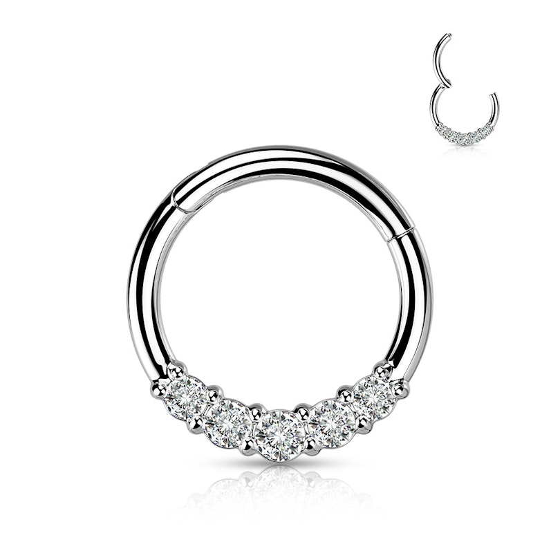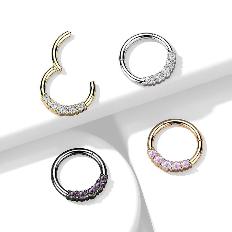 Navn: Hengslet ring i kirurgisk stål med fem edelstener