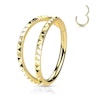 Denne segmentringen bærer preg av eleganse med sin forenklede, svært trendy design. Begge bøylene med er designet med pyramideutskjæringer som gir dette smykket mye karakter og finesse. Smykket passer for enhver anledning, enten man skal ut til sent om natten eller til en lunch på dagen. Ringen er tilgjengelig i 3 farger: gull, sølv og svart. Smykket har en trådtykkelse på 1,2 mm. og finnes i både 8 mm. og 10 mm. Perfekt for de fleste ørepiercinger, og for en septum-piercing.