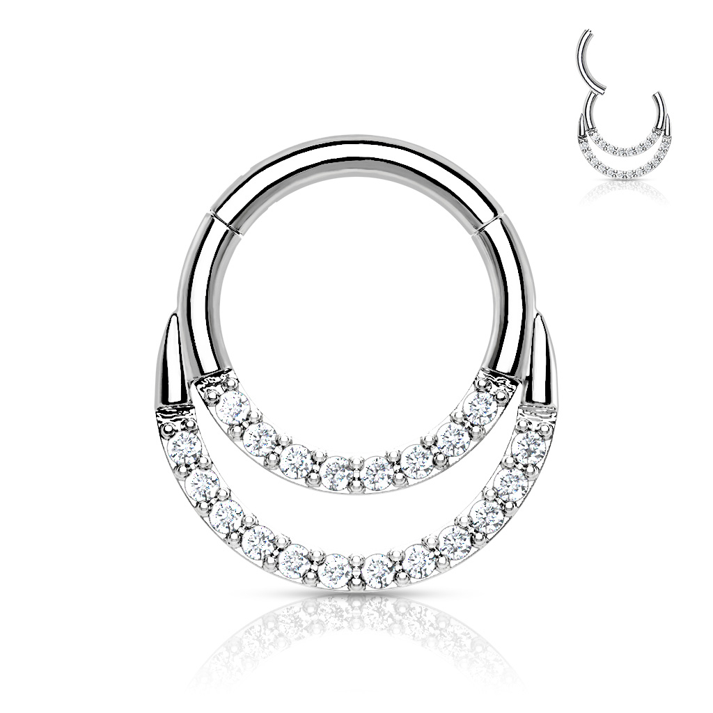 Hengslet titanring med stener i to rekker