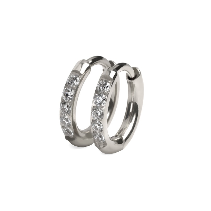Oppdag ditt nye must-have smykke: Disse eksklusive huggieringene i titan med cubic ziconiastener er laget av titan. Det gjør dem slitesterke, allergivennlige og lette i vekt for optimal komfort hele dagen. De glitrende cubic zirkoniastenene gir en glans som fanger oppmerksomheten, og ringene er fullstendig vanntette- du trenger nenmlig ikke å ta dem av. Selges som par - den perfekte kombinasjonen av luksus og hverdagsbruk.
