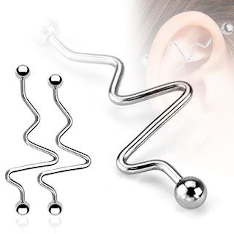 Hvis du har en industrial piercing, så kjenner du til de mange forholdsvis kjedelige designene. Denne modellen ligger allikevel i den kule enden, da den ikke bare består av et stykke rett stål. Den er blitt bøyd og formet så den ligner "grafen" fra en EKG-måler, som man ser på sykehuset når man skal ha målt hjertets aktiviteter.
