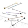 Hvis du har en industriell piercing i øret ditt, har vi et smykke til deg. Smykket består av en rett stav, som du vet, med to kuler i enhver ende. Midt på staven er det skåret ut en liten fordypning, hvor 8 små stener med en OCD er plassert perfekt. Stangen er av kirurgisk stål og er tilgjengelig i flere forskjellige farger, og det samme er stenene. Midlertidig kan bare den skinnende sølvfargede versjonen velges med andre stenfarger som er klare. Med andre ord; De fargede stavene kan bare velges med klare stener.